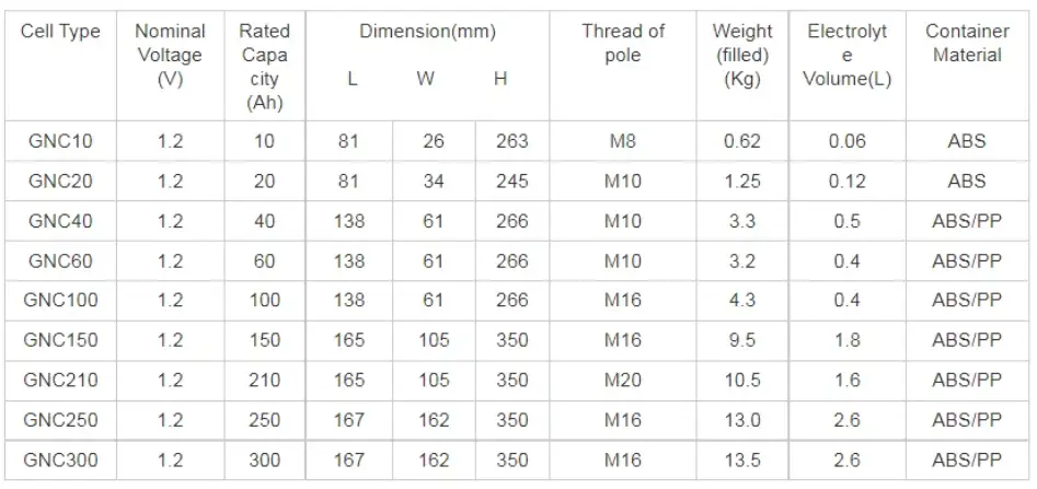 PIN NI-CD 1.2V 30Ah KPX30/GNC30 – PIN NIKEN CADMIUM KIỀM CÓ THỂ SẠC LẠI, HIỆU SUẤT ỔN ĐỊNH, CHỐNG RÒ RỈ, THÍCH HỢP CHO HỆ THỐNG NĂNG LƯỢNG, UPS, VIỄN THÔNG VÀ ĐIỆN NGOÀI LƯỚI