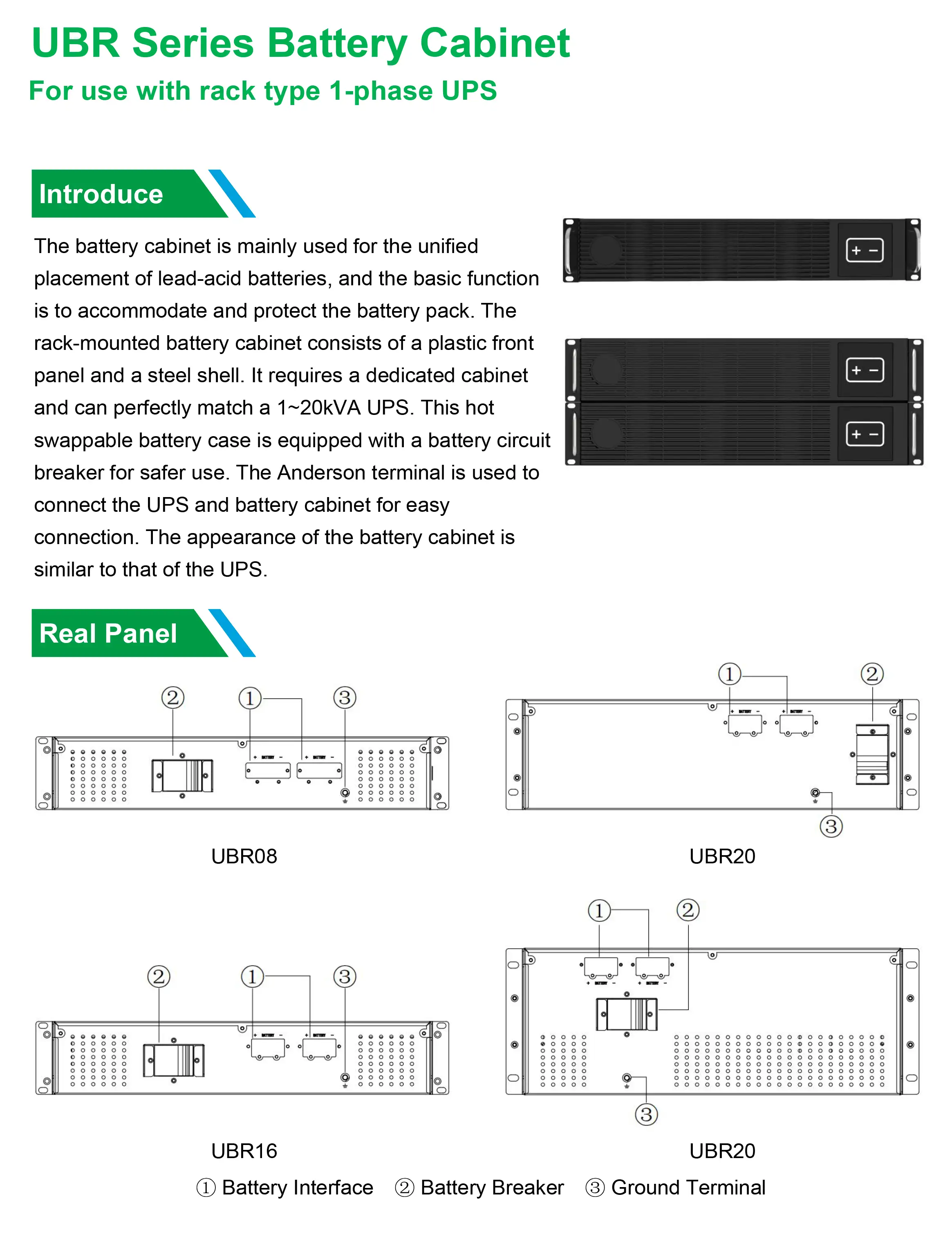 Với thiết kế vỏ thép chắc chắn, thẩm mỹ đồng bộ với UPS và tích hợp cầu dao ngắt mạch (battery breaker), UBR Series mang lại độ an toàn và độ bền cao trong vận hành.