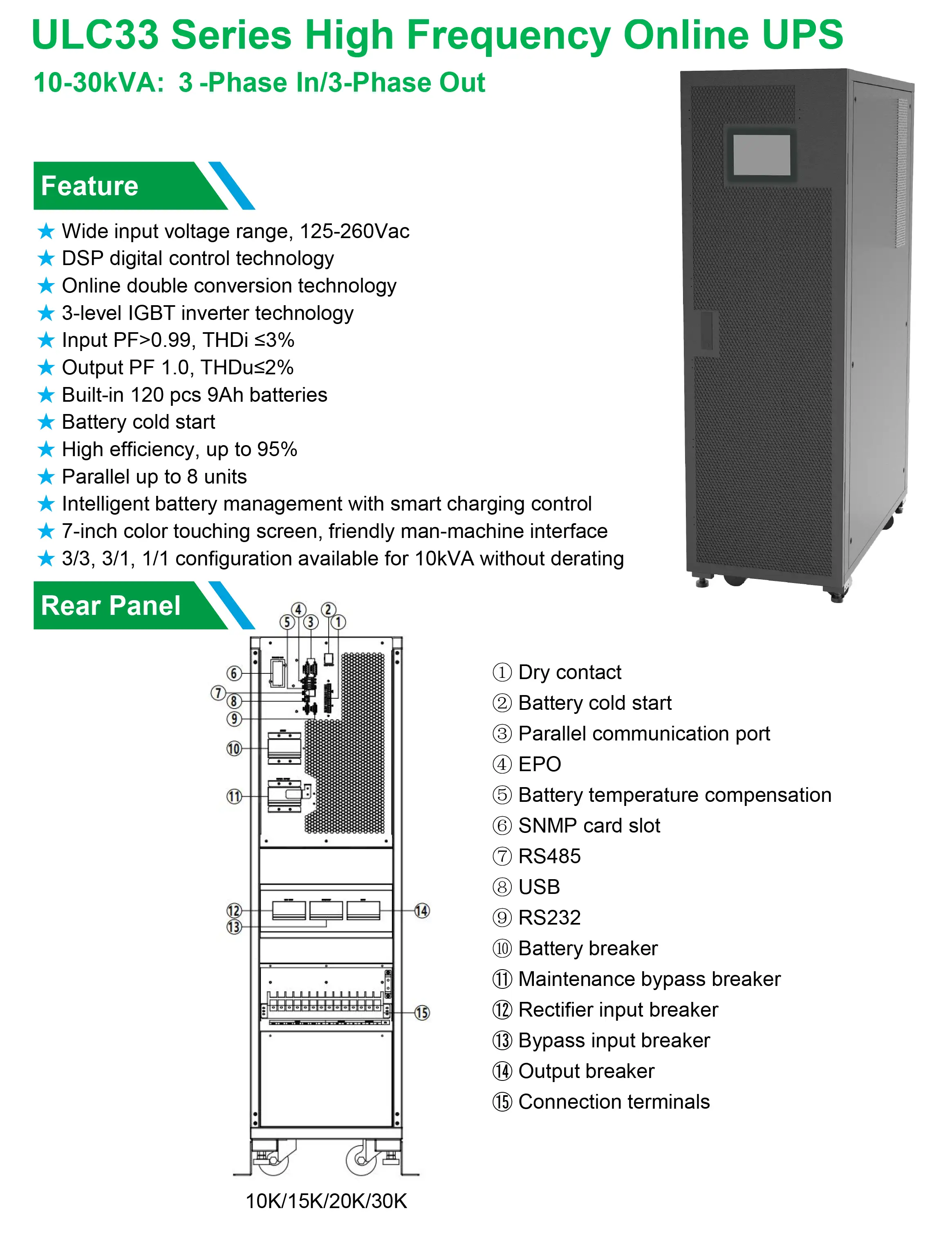 UPS 10kVA điện áp 220VAC ( 3 pha ) – Model: ULC33010KS